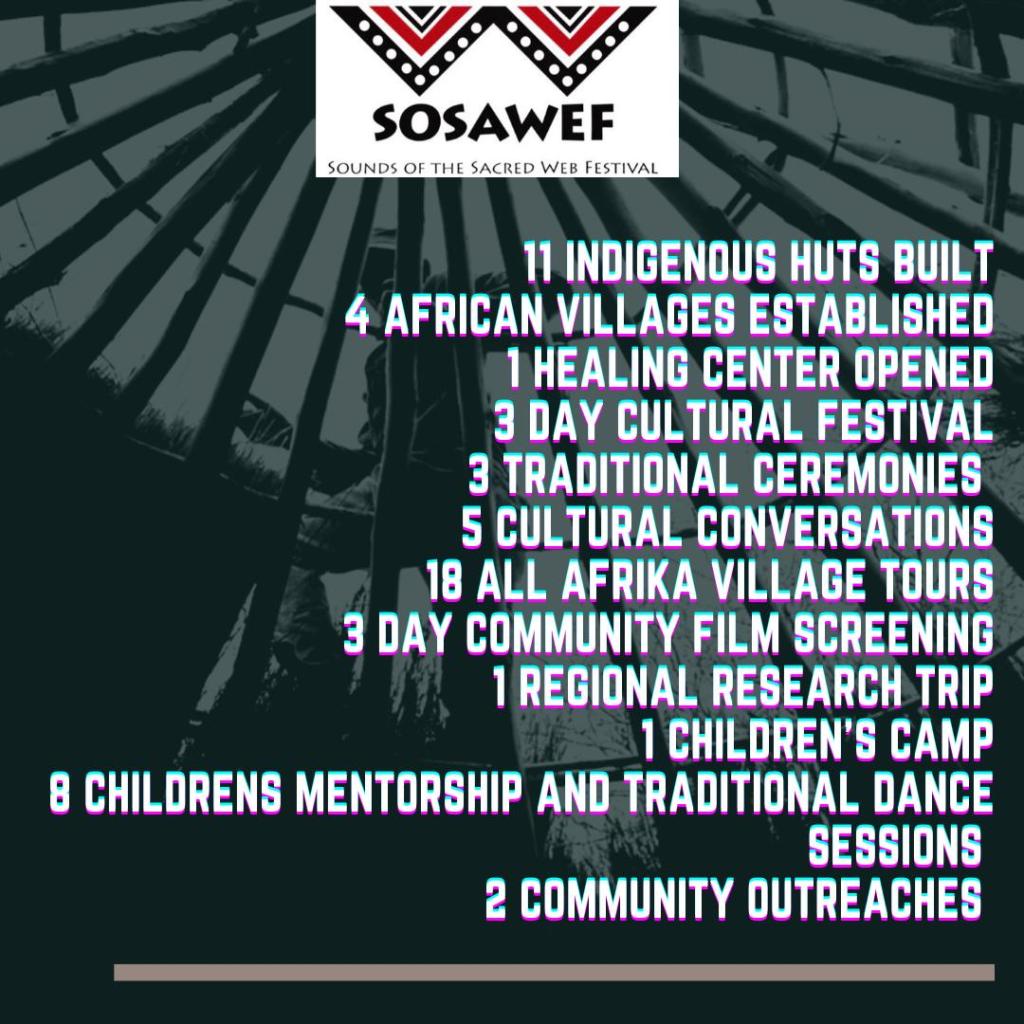 The Sounds of the Sacred Web Festival (SOSAWEF) was a celebration of the rich and diverse spiritual, ritual, material culture and artistic influences of cultural interactions and heritage happening within a purpose build ALL AFRIKA VILLAGE thematic park. The festival was centred on the establishment of this safe space for cultural and artistic dialogue and interactions within a context propelled by the of traditional African knowledge systems. Through this festival Dzimbanhete Arts and Culture Interactions Trust and its partner Oja Cultural development Initiative in Nigeria promoted intercultural dialogue and cultural exchanges amongst diverse audiences in an accessible manner to collectively celebrate, discuss and document African heritage and culture over a period of 17 months.